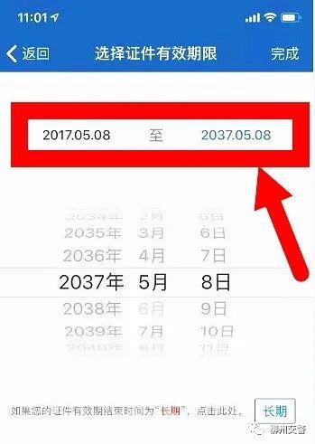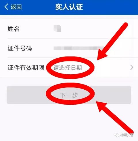 进入实人认证界面,选择证件有效期限,点击“下一步”。