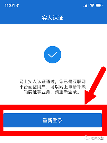 点击完成后,出现实人认证照相框,请将本人头部至于照片框内,等待系统提示,认证完成后系统自动提示成功,此时点击重新登录即完成“实人认证”。