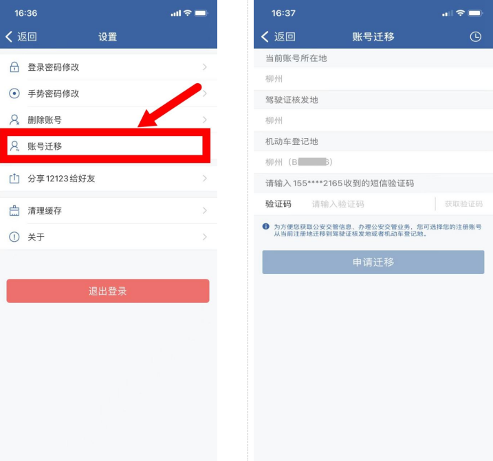 申请人登录“交管12123”APP后,在首页,点击“我的”进入“设置”,申请人可以通过“删除账户”和“账号迁移”两种方式进行更新。