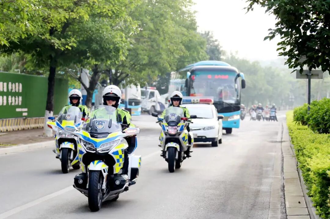 柳州交警机动大队铁骑队员、无人机中队全员上路,支援考卷押运工作及车辆应急备勤工作,负责指定考点的考生送考工作,在各参考学校和考点学校周围,按照送考护考线路做好沿途巡逻,并支援各学校送考车辆和护考车队,同时,备好应急处突警力,以应对各种突发状况。
