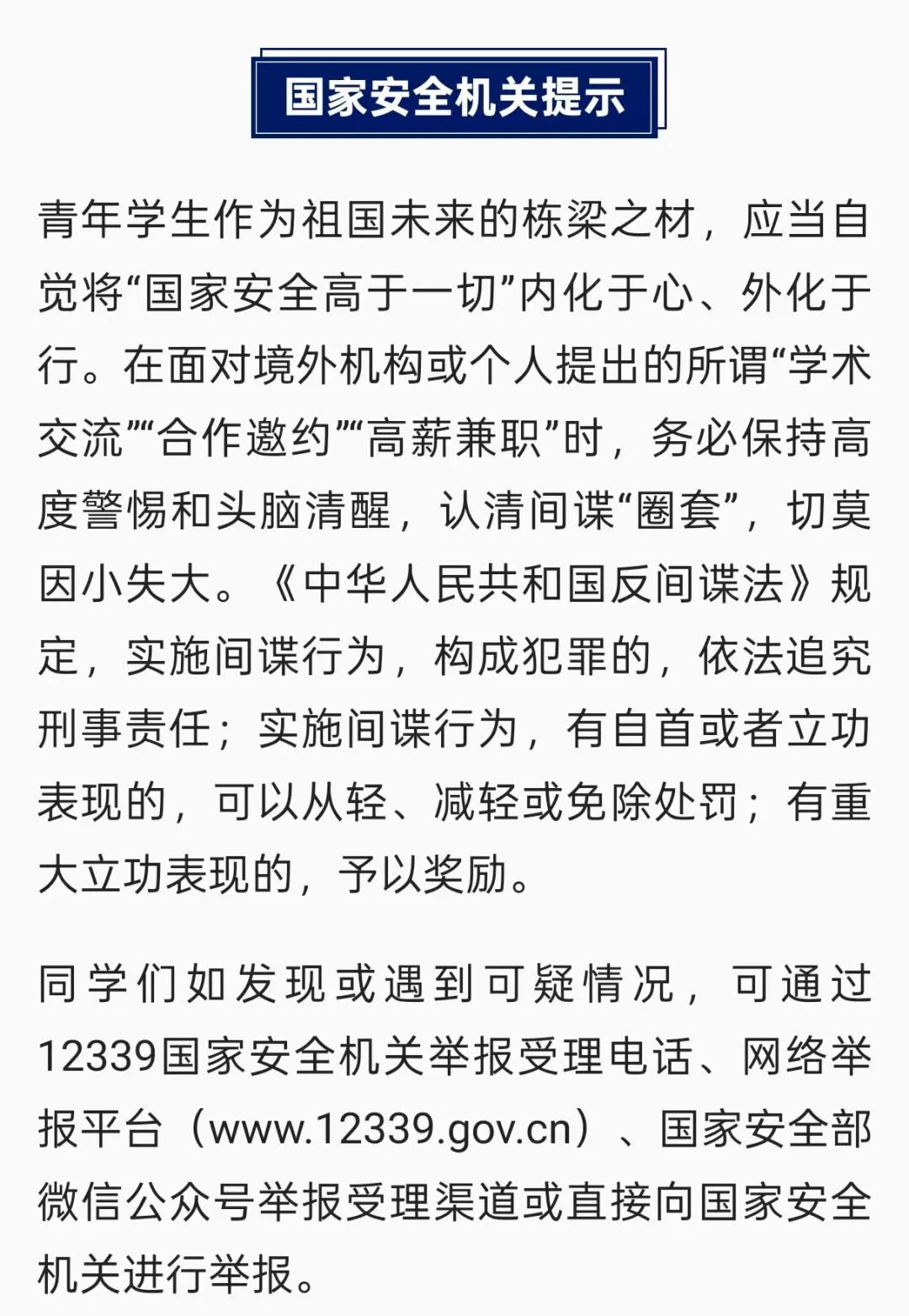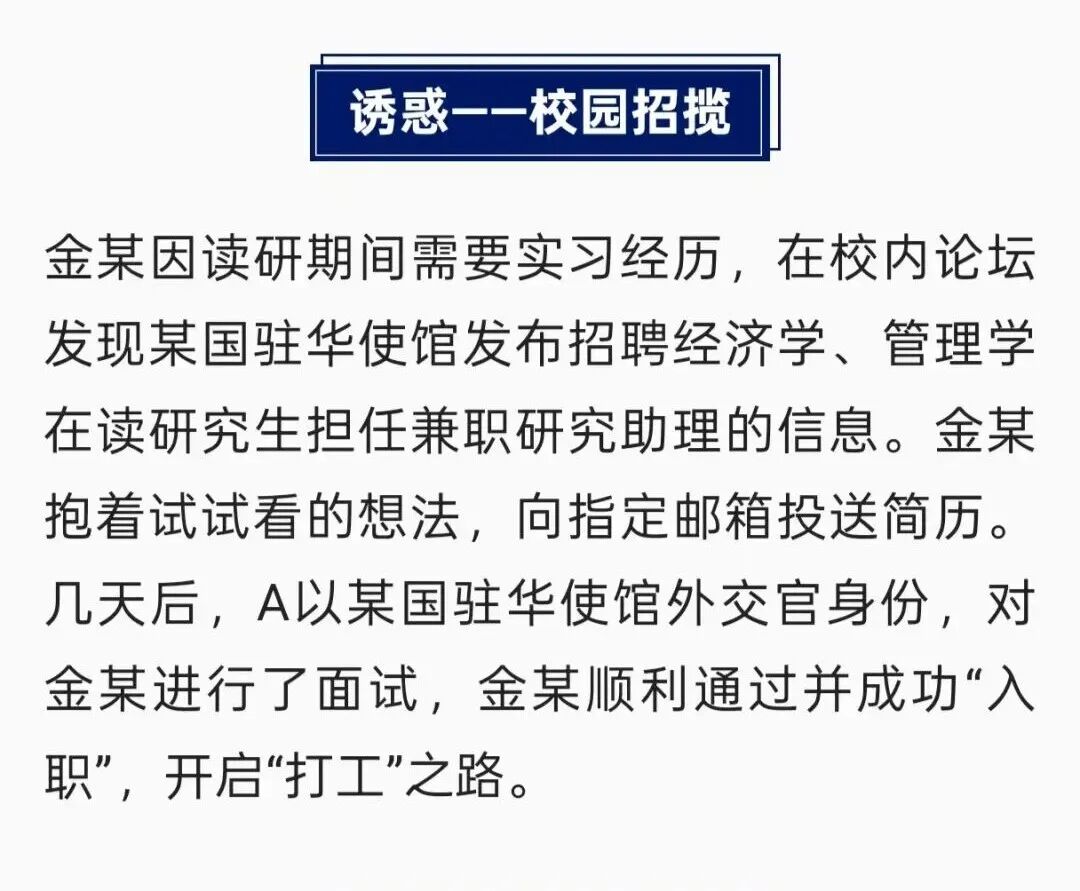 境外间谍以求职兼职为名瞄准我青年学生群体!国安部门披露