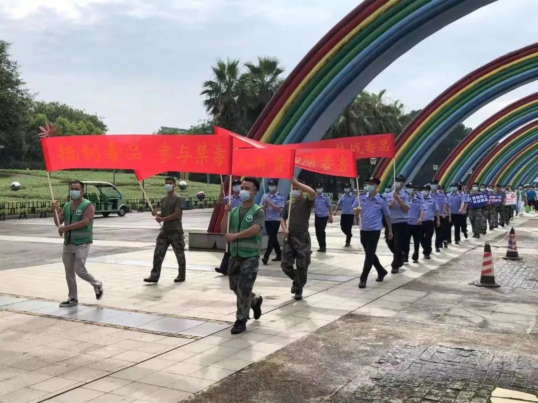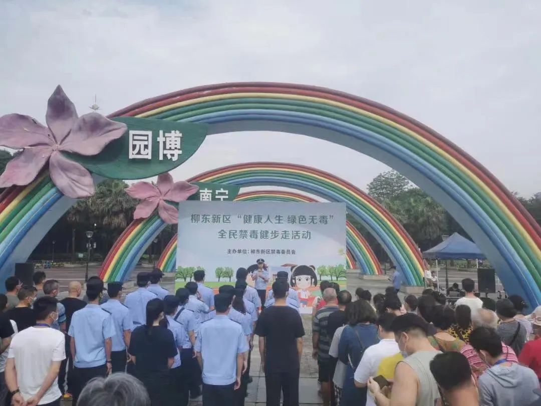 今年6月22日,在第35个国际禁毒日即将到来之际,600多名民警、辅警、学生、群众、禁毒社工、禁毒志愿者穿着马甲,举着印有“抵制毒品参与禁毒”字样的旗帜和标语牌,迈着整齐的步伐、喊着响亮的禁毒口号,精神饱满地走在柳州市园博园内,成了一道亮丽风景线。