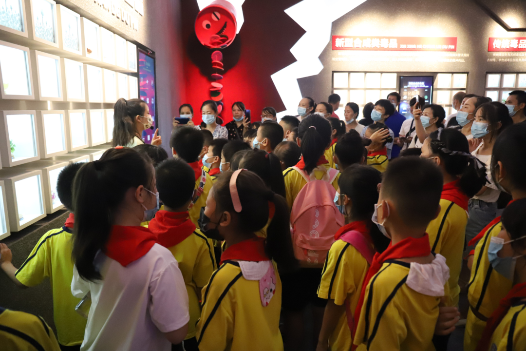 8月酷暑,却比不过弯塘路小学本部2020级3班的同学们学习禁毒知识的热情。8月20日上午,在讲解员的带领下,同学们认真地参观了基地,并在毒品展柜前积极举手提问。
