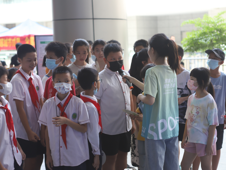 讲解员一一回答,又引发了同学们对禁毒知识更浓厚的兴趣。待参观完毕后,同学们在活动场地前集合,开始参与禁毒有奖知识竞答。