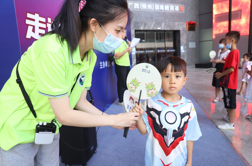 “我家小孩在答题活动里赢了两把小扇子,送了一把给我,还给我讲毒品会伪装成什么零食。医生教他给人体模型做心脏按压他也做得很好,我觉得这种活动非常好,小孩来这里参观学到了很多知识。”韦女士摇着印有柳州禁毒人物IP的小扇子笑着说。