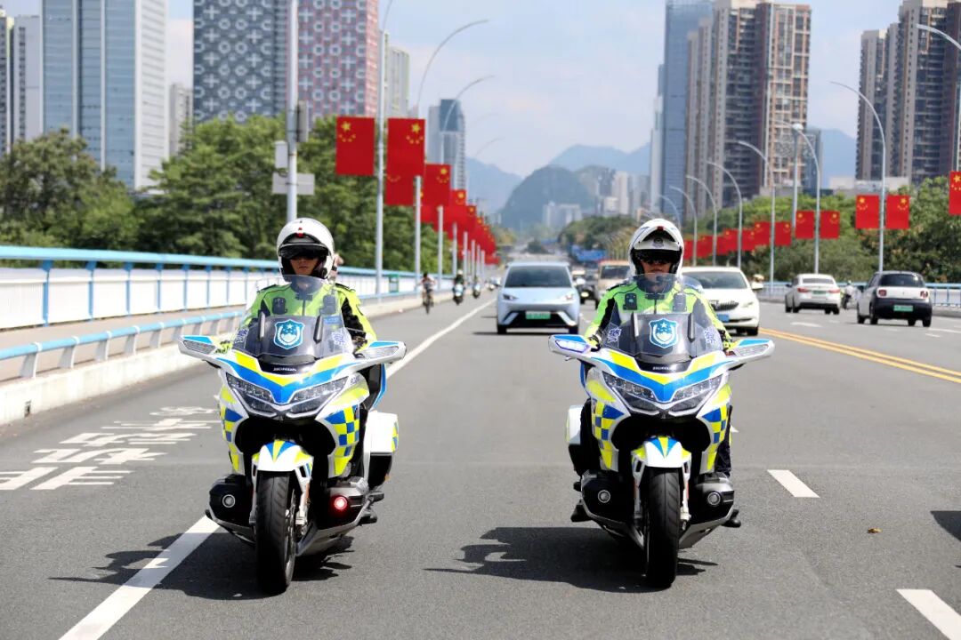 金秋十月,红旗招展,柳州处处洋溢着喜庆祥和的节日氛围,而在这一片“中国红”背后,有一抹坚定的“警察蓝”,默默守护万家平安。假期期间,柳州警方全体动员,出动2万余名警力,扎实做好交通疏导、巡逻防控、服务群众、宣传教育等各项工作,用“辛苦指数”换取人民的“幸福指数”。