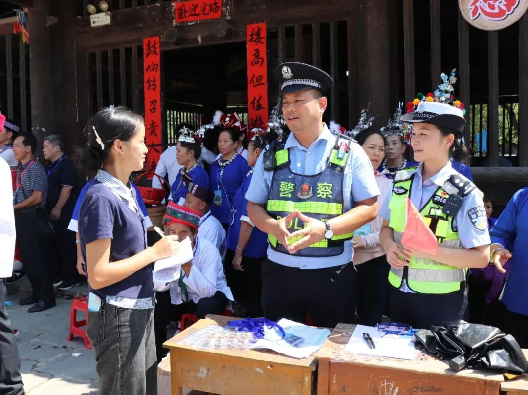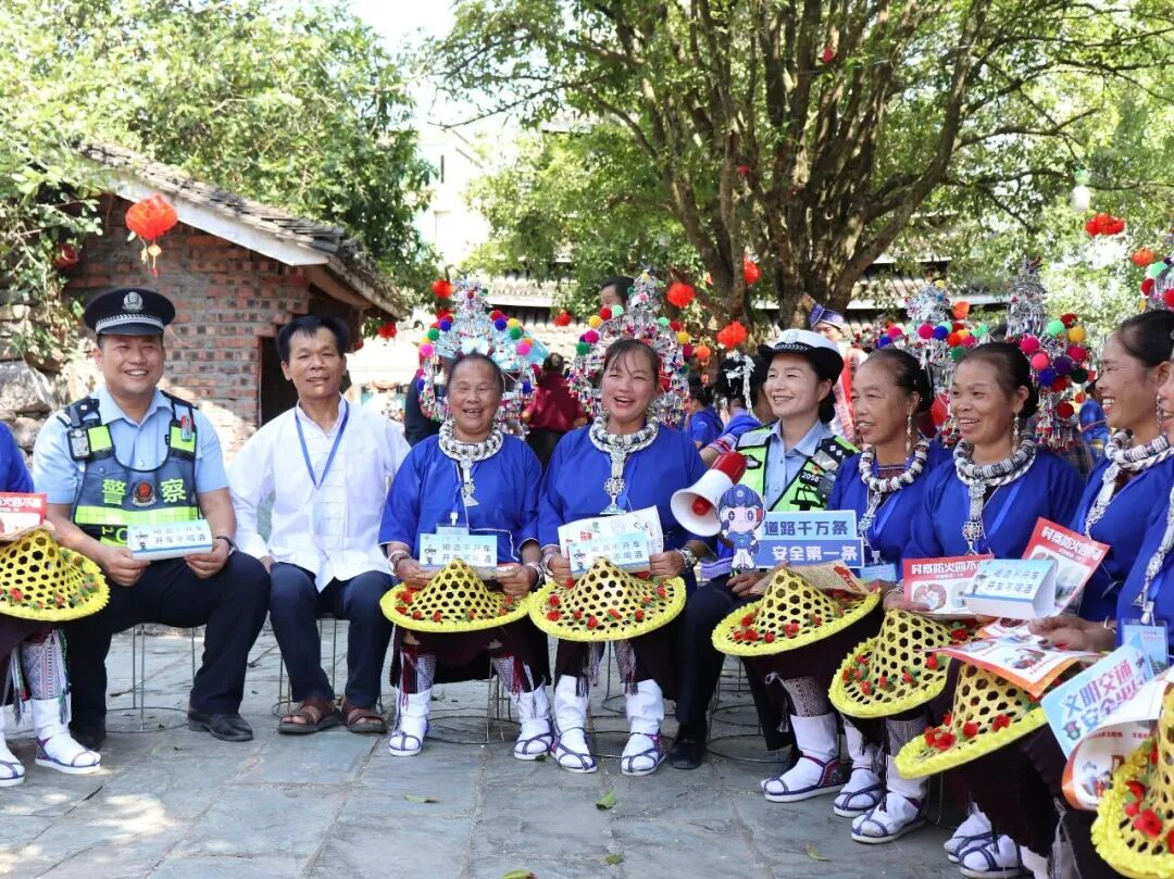 三江侗族自治县的鼓楼前,身着侗族盛服的乐手一边弹奏琵琶,一边哼唱歌曲;身着“荧光绿”马甲的民辅警们手持交通安全提示牌和宣传册,围坐在乐手身边。这特殊的一幕吸引了来往人群的注意,不少人好奇地停下脚步,上前观看。这是侗族“多耶节”上的动人一幕,却只是柳州公安安全宣传工作的一个缩影。假期期间,民辅警们深入基层,走近群众身边,将安全宣传融入地域特色,让安全知识“看得见、听得到、记得住”。