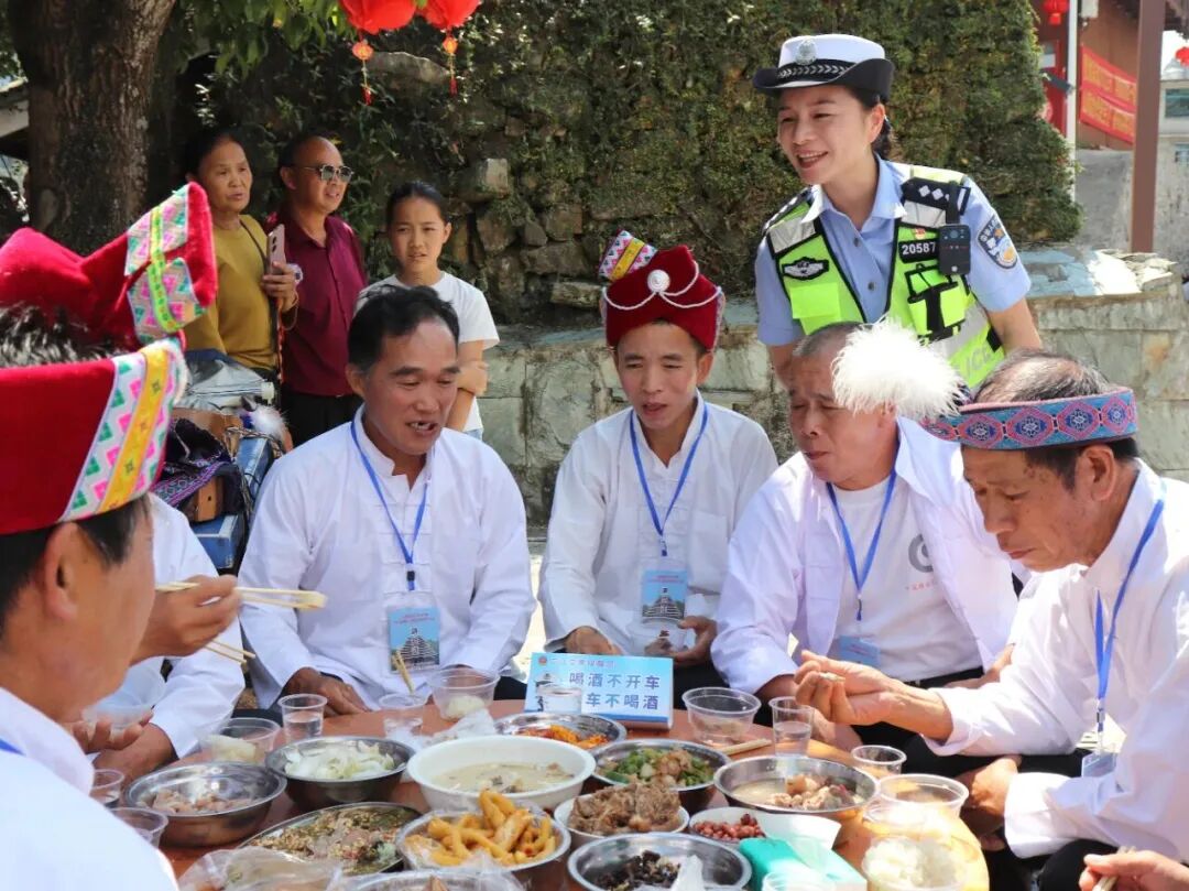 10月6日,三江侗族自治县程阳八寨景区举办了盛大的百家宴。民警们走进宴席间,详细地向正在享用美食的游客们宣传交通安全。“节日期间聚餐饮酒是常事,但一定要牢记‘喝酒不开车,开车不喝酒’;乘客朋友们要注意不乘坐超员超载车。”餐桌上还摆放的交通安全提示牌,时刻提醒大家“安全为先”,让这顿民俗盛宴更添“安心”滋味。