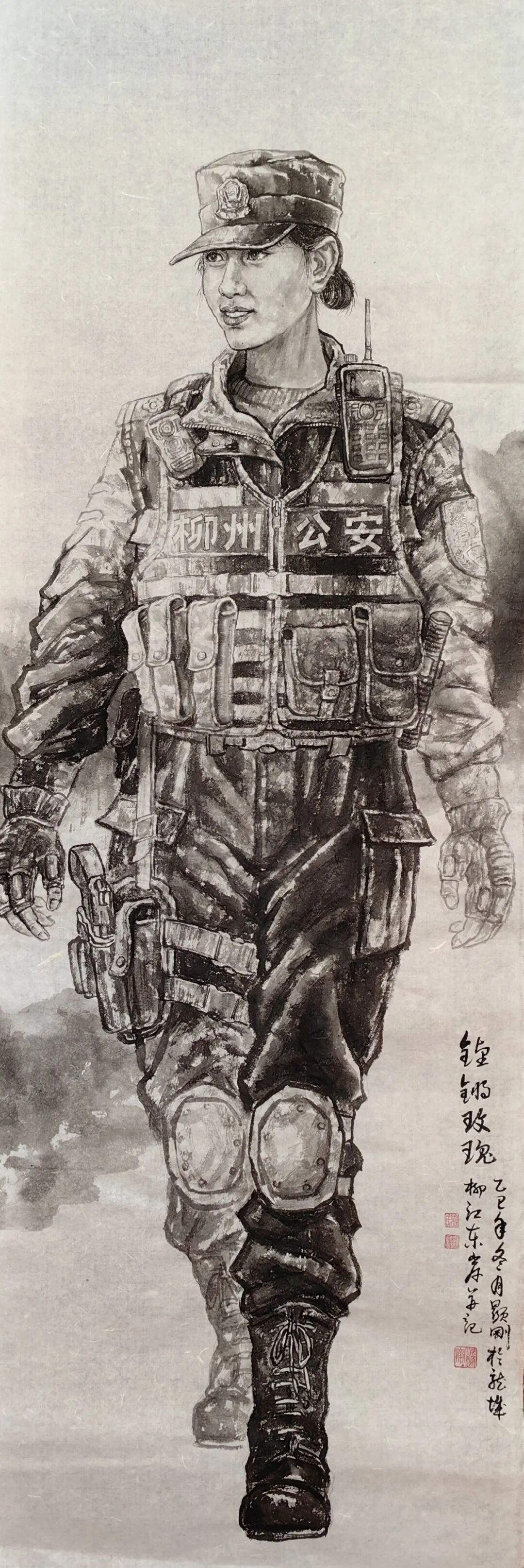 活动自2025年10月底启动征稿以来,吸引全国公安系统在职民警、辅警及离退休同志积极参与,共收到投稿作品1400余件。经专家评审,最终筛选出189幅入展作品,涵盖书法作品136幅、美术作品53幅。其中,广西公安文联美协副主席、柳州市美术家协会副主席、柳州市公安局民警赖显刚的作品《铿锵玫瑰》获优秀作品奖。