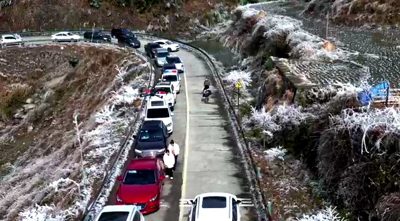 发布日期:2026-01-23 17:20 来源:柳州交警“哇!元宝山真的美成童话世界了!”——这几天,不少柳州人的朋友圈被融水元宝山的雪景“刷屏”。雾凇晶莹,云海翻涌,仿佛仙境落入凡间,吸引众多游客前来打卡。不过,美景虽“冻人”,山路却悄然结冰,一些游客在拍照时不慎上演“趣味滑步”,令人捏把汗。