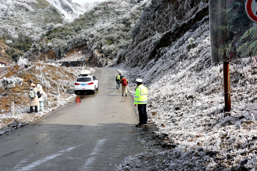 冰雪虽美,安全更重。柳州交警温馨提示:前往高寒山区赏雪,请提前关注天气与路况,随车配备防滑链等应急物资,行驶中务必控制车速、保持车距,经过结冰路段时尽量避免停车逗留。