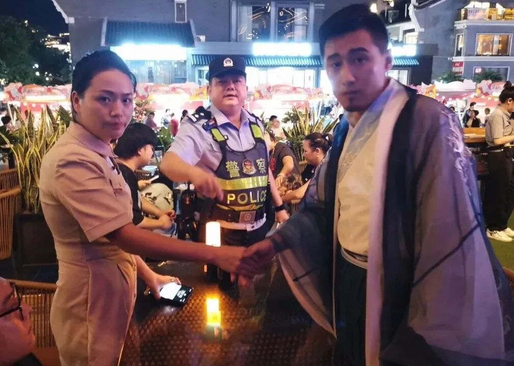 窑埠古镇作为热门旅游打卡地,节假日单日客流量突破万人次,游客遗失财物、孩童走失的情况也时常发生。2025年2月,外地游客吴女士在古镇游玩时,不慎将价值2万多元的金手镯遗失,焦急万分地向覃爽求助。覃爽一边安抚吴女士情绪,一边快速联动安保人员调取周边监控,并将遗失物品信息发到商户义警群征集线索。仅几分钟后,就有商户联系覃爽称发现了手镯并主动送到了派出所。吴女士拿到失而复得的手镯后深受感动,对覃爽表达真挚感谢,并在朋友圈发文:“两万多元失而复得,我爱柳州,下次还来!”