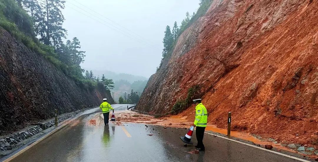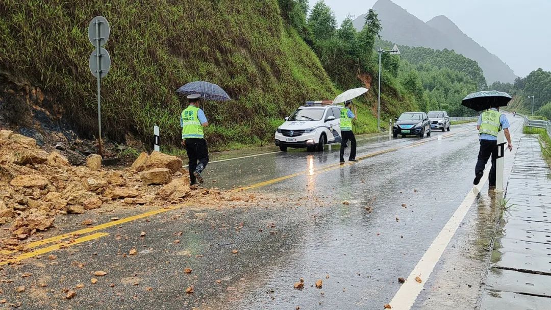 6月17日到18日,柳江区、鹿寨县、融安县、三江侗族自治县、融水苗族自治县等县区多地发生道路塌方、交通中断等情况。各地警方第一时间赶至事发现场,紧急除险保畅护安全,同时在相关积水严重或塌方路段,设置警戒标识、施行分流疏导、警示提醒绕行等临时管制措施,全力救助受困群众。