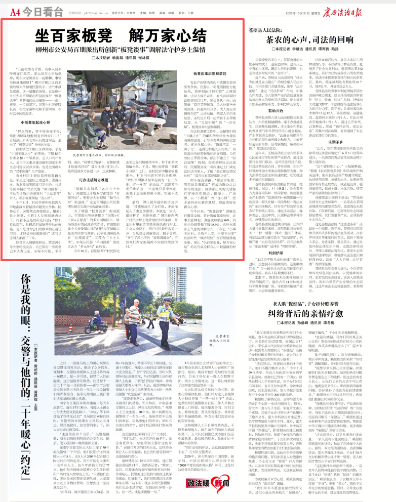 广西法治日报:百朋派出所创新“板凳谈事”调解法守护乡土温情