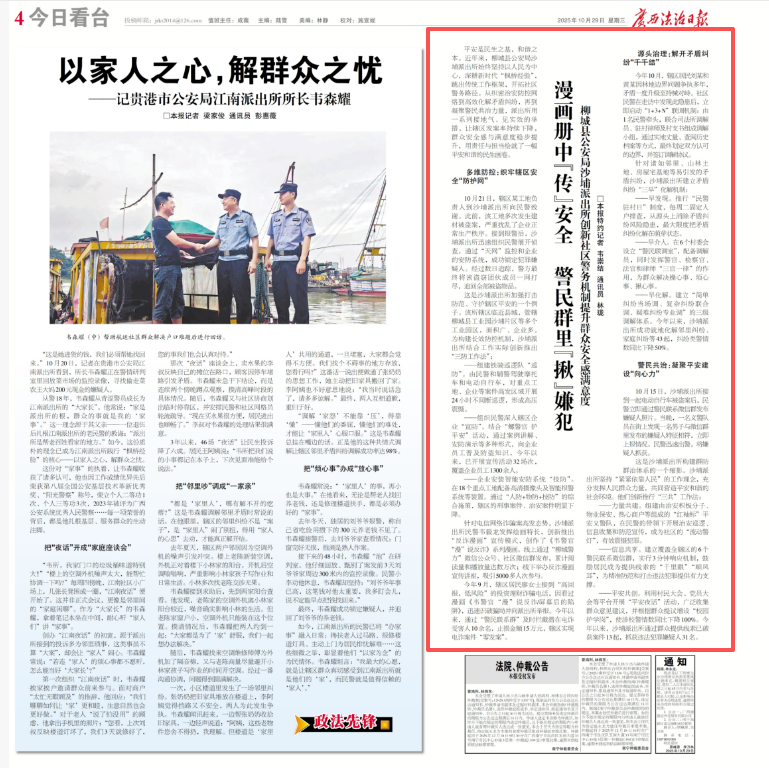 广西法治日报:柳城县公安局沙埔派出所创新社区警务机制提升群众安全感满意度