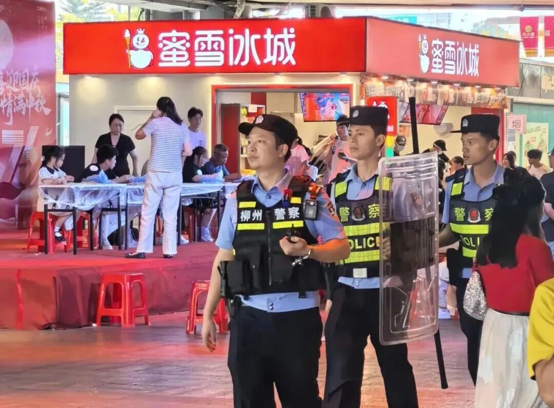 在社会面管控方面,柳州警方坚持“屯警街面、动中备勤”机制,对辖区商圈、公园、烧烤摊等夜间经济活跃场所进行高频次、长时段巡逻,切实提高见警率、管事率,及时发现和消除安全隐患,高效压降事故发生率。作为柳州最火爆的夜市,胜利烧烤城多次“火出圈”,假期期间更是人流暴增。针对宵夜摊、烧烤摊易发生酒后寻衅滋事和噪音扰民警情的特点,9月30日开始,胜利派出所就将警务室前移到夜市核心位置,同时采取“定点值守+动态巡逻”相结合的模式,科学布防,快速响应,实现夜间“不打烊”,全力守护辖区群众安居乐业。