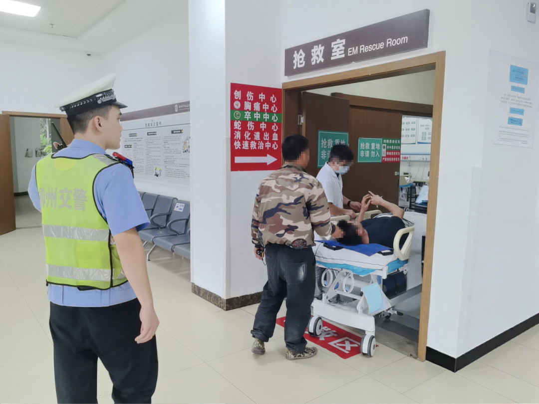 10月19日17时许,柳江大队接到紧急求助:有人被毒蛇咬伤,需立即送往市中医院东院。辅警韦文杰、吴纯勇接到指令后迅速出发,在西外环桥底接应到求助车辆。他们开启警灯、鸣响警笛,并与指挥中心协同联动,提前疏导路口交通。原本50分钟的路程,仅用28分钟便安全抵达。两人还协助家属将伤者送进急诊室,直到确认伤者得到妥善救治后才默默离开。