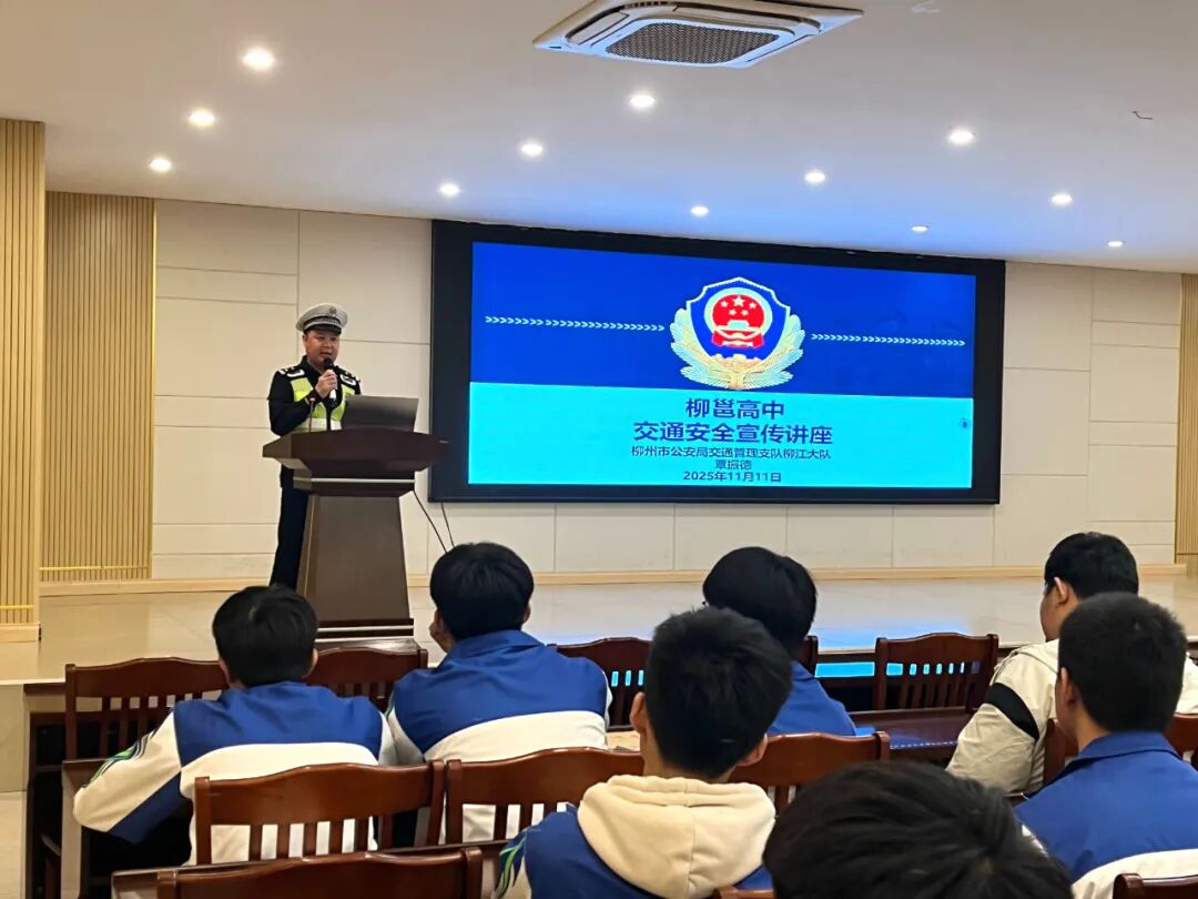 发布日期:2025-11-12 08:52 来源:交通管理支队长期以来,柳州市公安局交管支队始终将守护学生校园安全置于重要位置,长期致力于通过警校合作共建平安校园。为持续深化这一工作,11月11日,宣传警力走进柳州市柳邕高级中学和柳州市保爱小学,开展了一系列精准生动的交通安全宣传活动,将“知危险、会避险”的安全理念深植于师生心中。