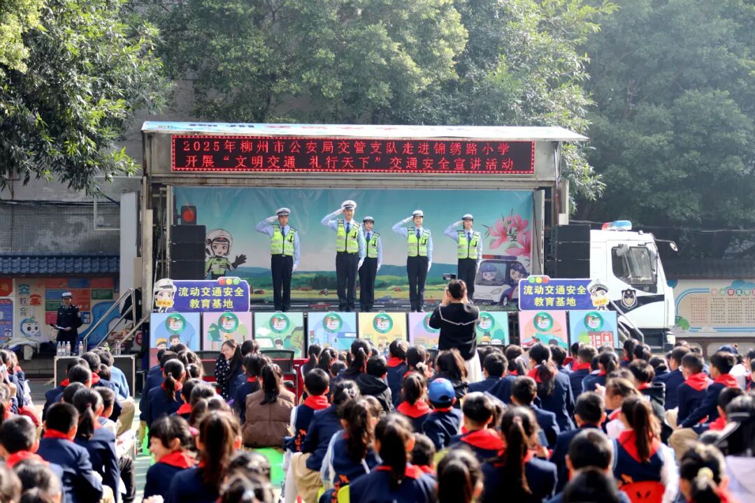 12 月 9 日,柳州市公安局交通管理支队交通安全宣传小分队走进锦绣路小学,为孩子们送上一堂趣味十足又干货满满的交通安全课,还带来了一位能说会道的机器人 “神秘小助手”。