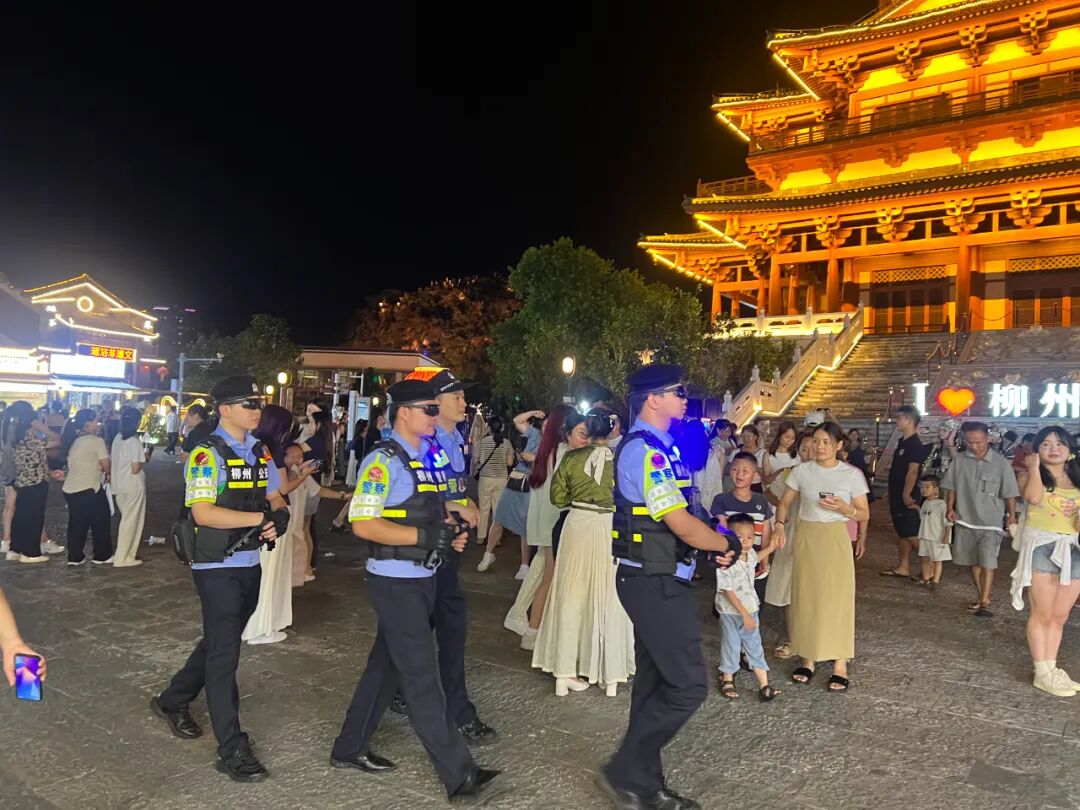 “来柳州旅游,随处就看见巡逻的警察和警灯闪烁,特别有安全感!”7月6日晚,城中区风情港夜市里,游客对满城都能见到警察,伸出大拇指点赞。夏日的柳州五星步行街灯火辉煌、人潮涌动,面对群众旅游需求旺盛等新形势,柳州公安组织派出所、巡警、交警、特警等警种部门,融合治安防控、社区警务、交通管理、应急处置等职能,建立“四警合一”旅游景区警务模式,为游客提供全天候安全保障服务。