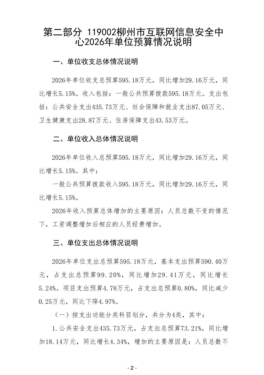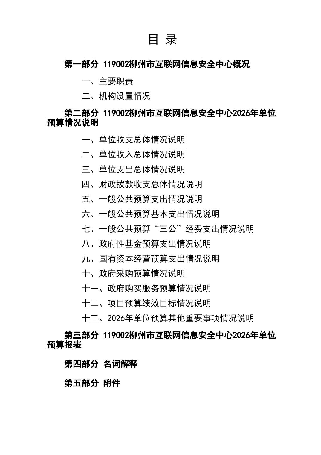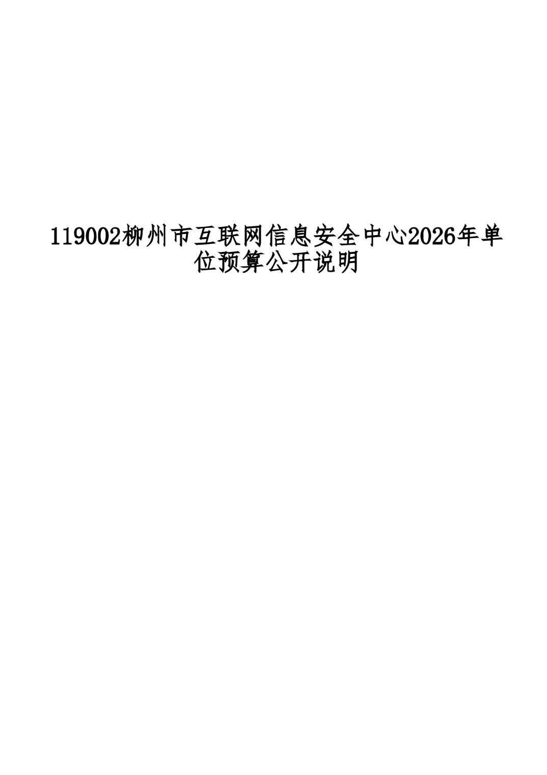 119002柳州市互联网信息安全中心2026年单位预算公开说明