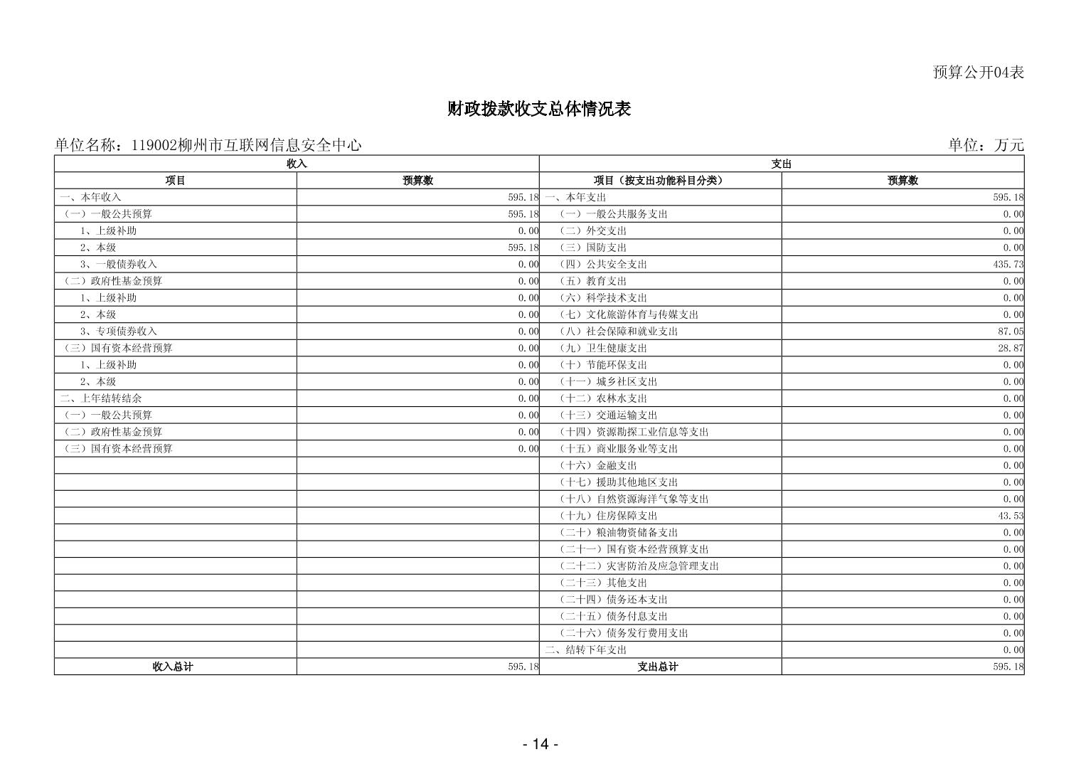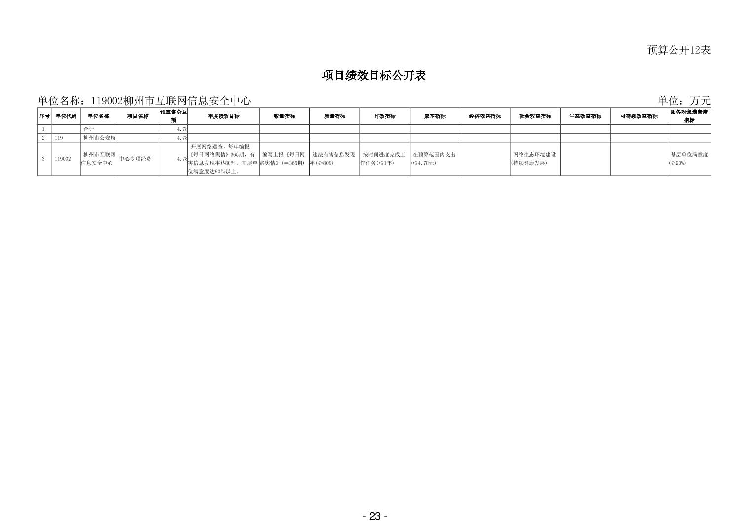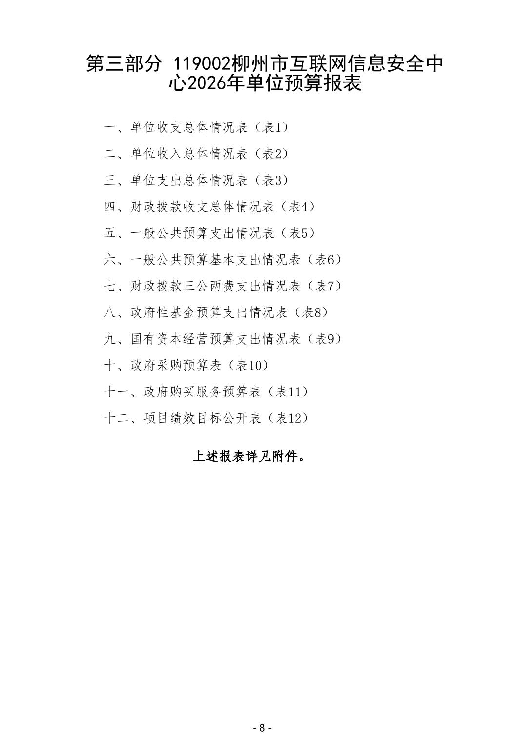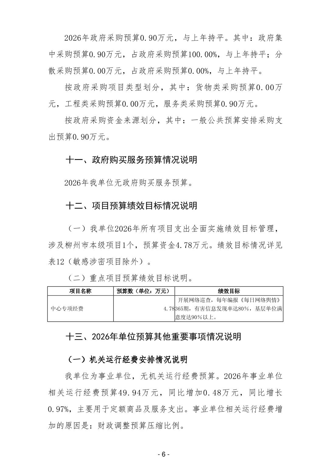 119002柳州市互联网信息安全中心2026年单位预算公开说明
