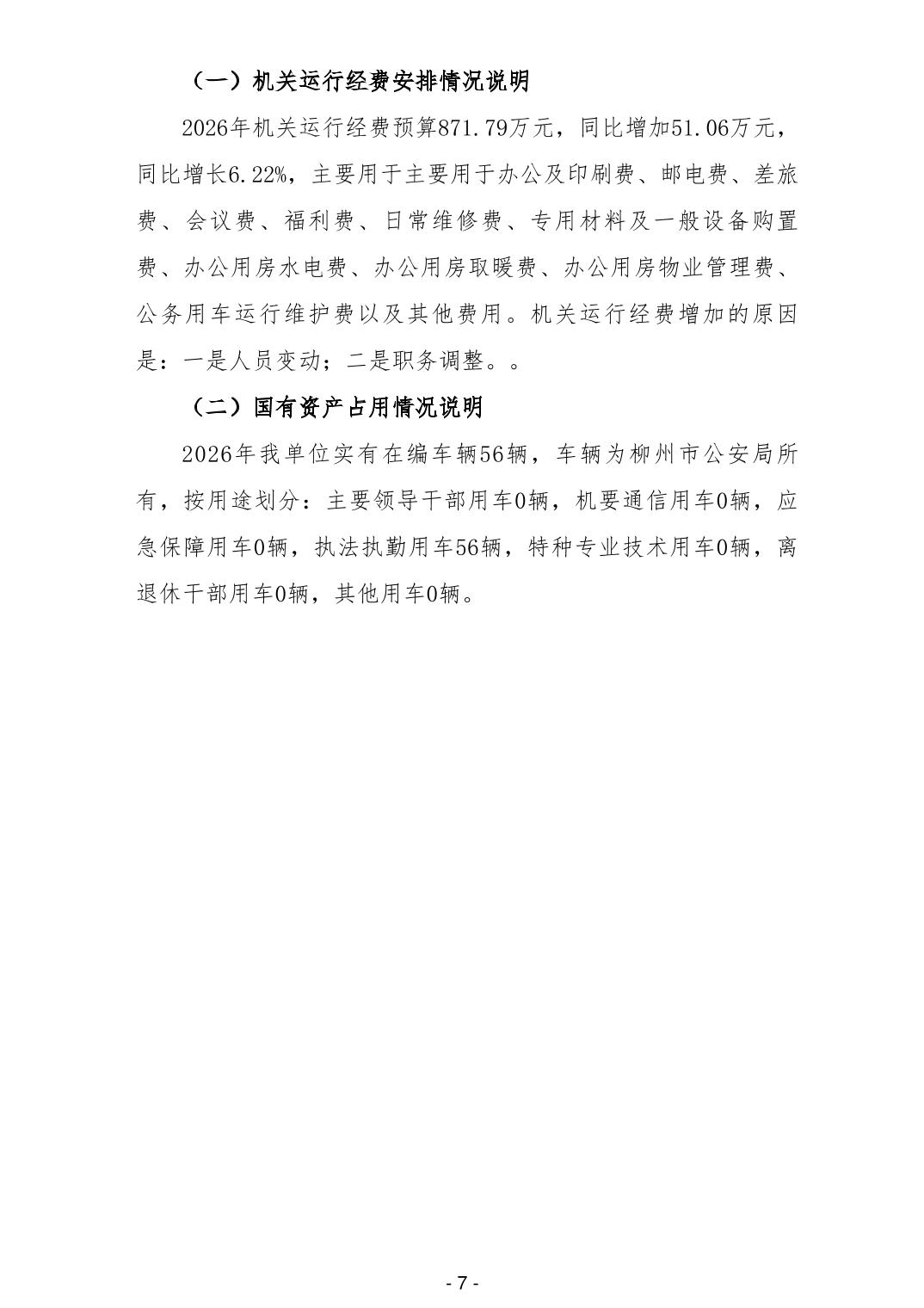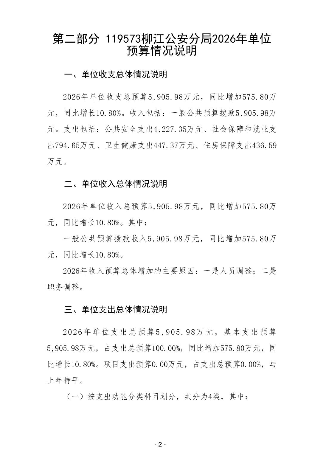 119573柳江公安分局2026年单位预算公开说明
