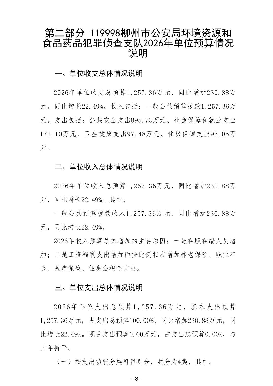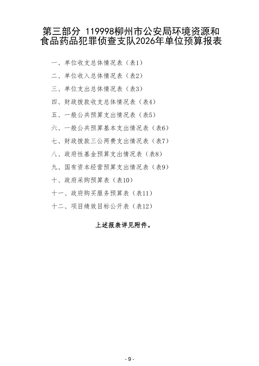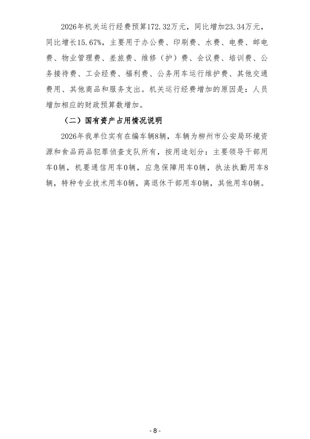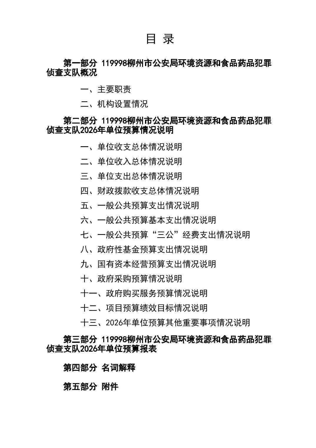 119998柳州市公安局环境资源和食品药品犯罪侦查支队2026年单位预算公开说明