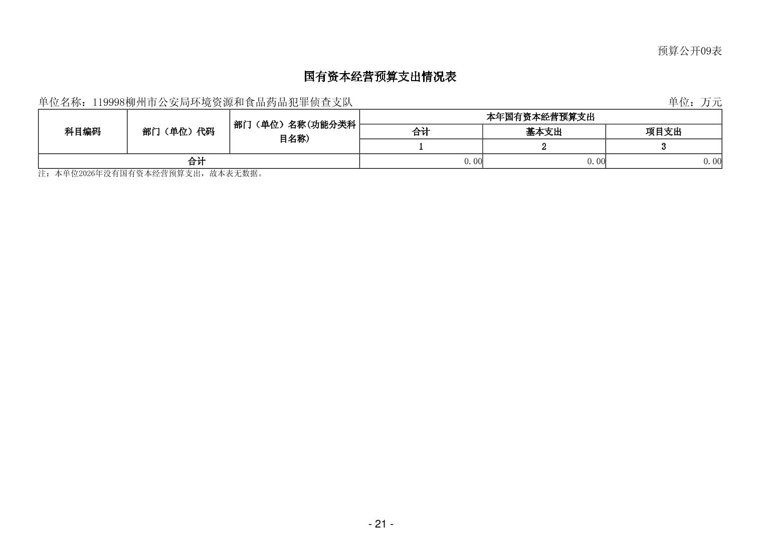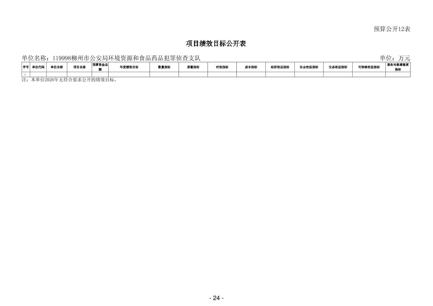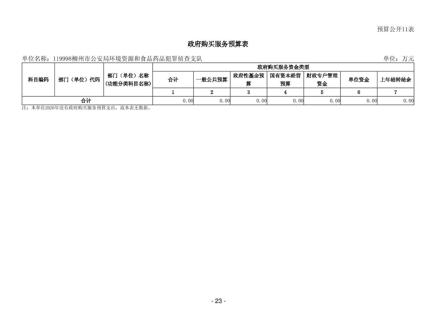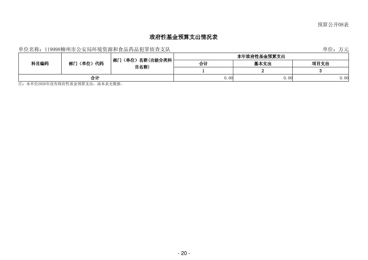 119998柳州市公安局环境资源和食品药品犯罪侦查支队2026年单位预算公开说明
