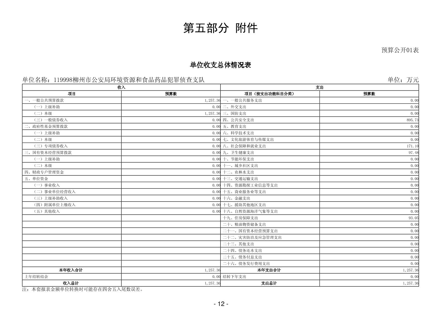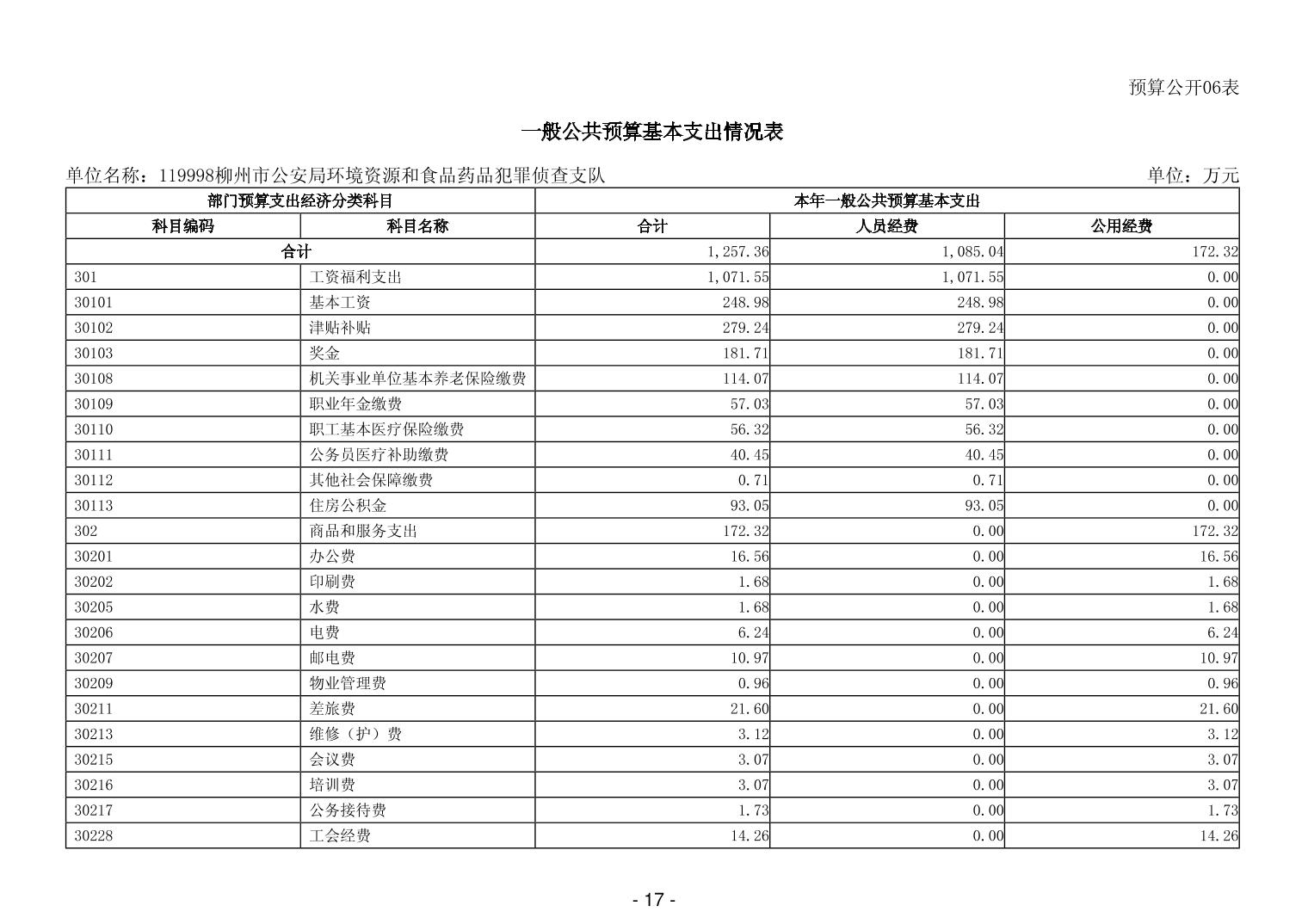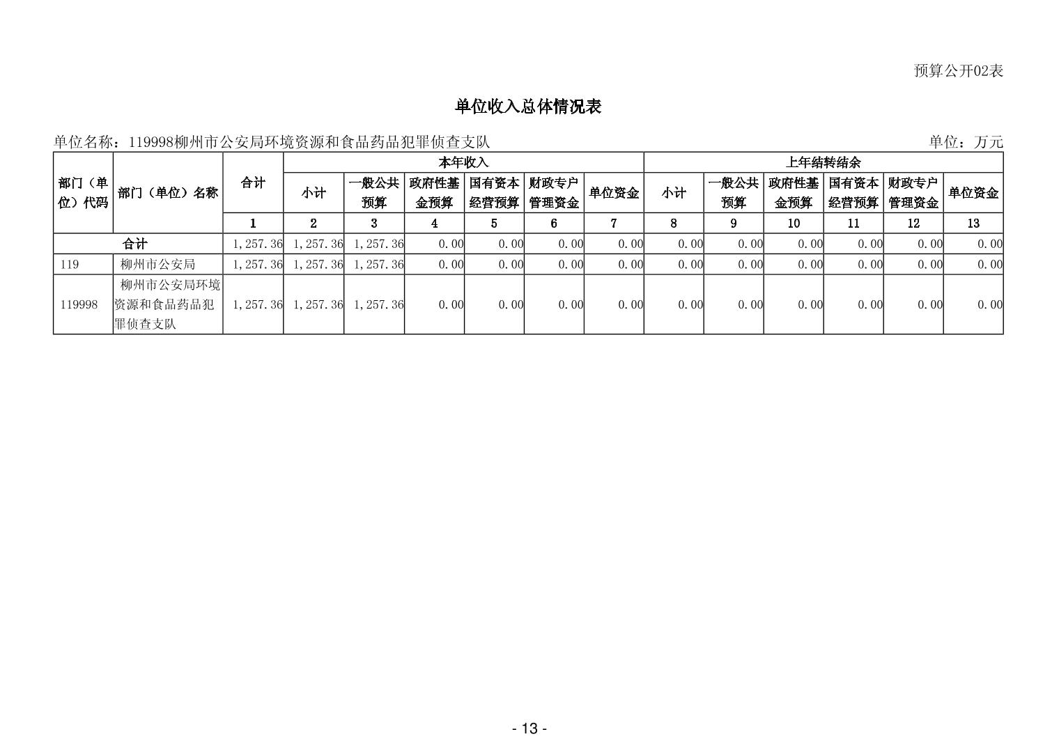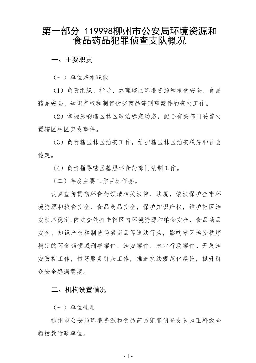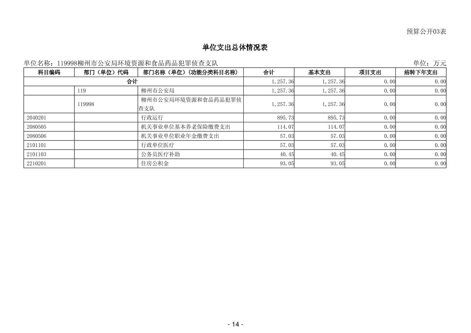119998柳州市公安局环境资源和食品药品犯罪侦查支队2026年单位预算公开说明