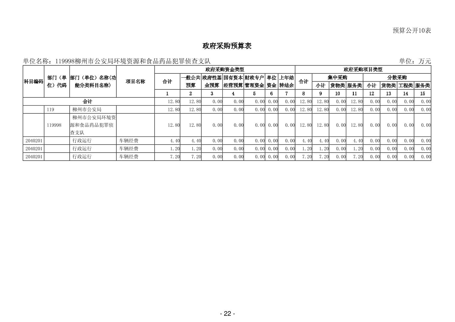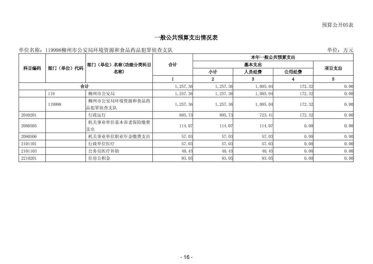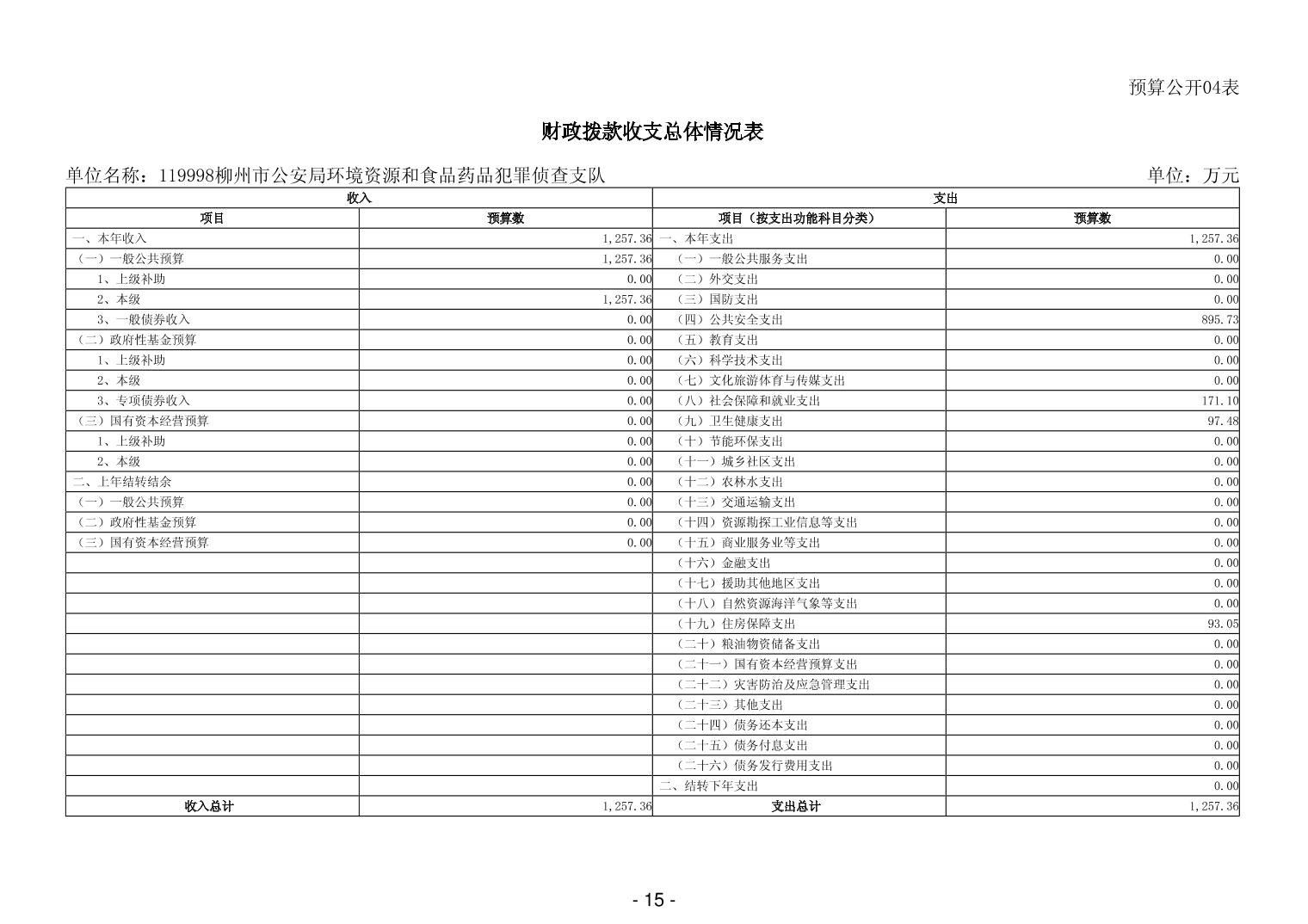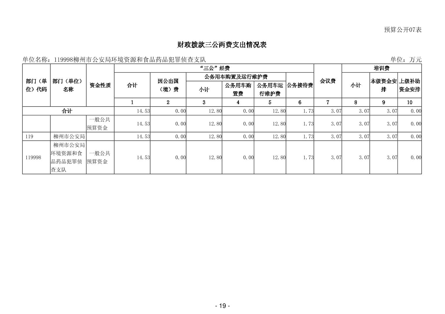 119998柳州市公安局环境资源和食品药品犯罪侦查支队2026年单位预算公开说明
