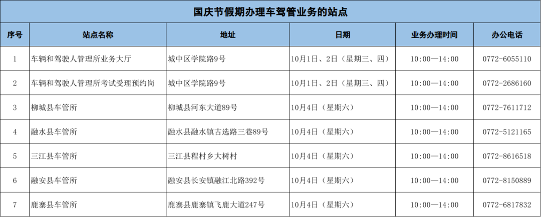 为方便广大群众办理交管业务,车辆和驾驶人管理所在国庆节期间提供交管业务办理服务。