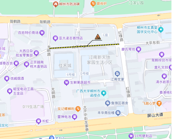施工地点:光明路(驾鹤路至屏山大道)实行全封闭占道施工。施工期间,机动车需改道通行,行人与非机动车不受影响。