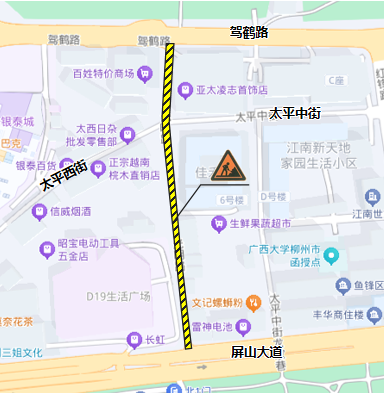 关于太平中街、光明路、柳石路、屏山大道、乐群路占道施工的通告