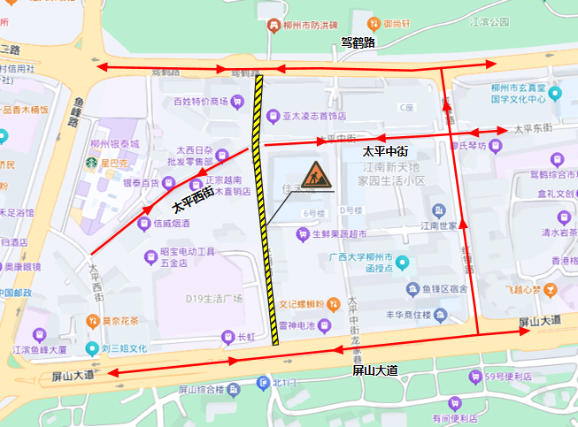 施工地点:太平中街(红锋路至光明路),施工期间,太平中街实行占道施工,过往车辆及行人需按现场施工交通指示标志有序通行。